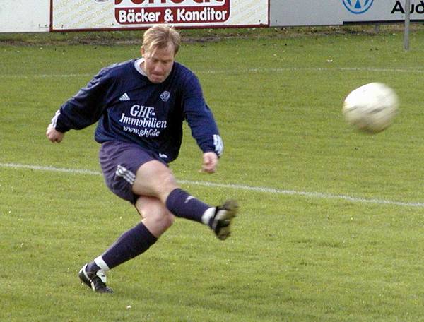 Ex-Profi Uwe Eckel (hier beim Freistoß) bleibt Trainer der 2. Mannschaft des VfL Germania. Er einigte sich mit den Germania-Verantwortlichen über eine weitere Zusammenarbeit für die kommende Saison. Derzeit kämpft die "Zweite" in der 1. Kreisklasse um den Aufstieg in die Kreisliga.