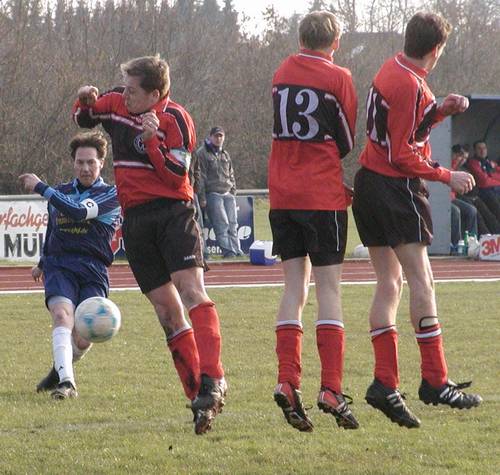 30.04.04: Das "kleine" Stadtderby zwischen Frisia Loga II und der VfL-Reserve in der 1. Kreisklasse verlief äußerst spannend. Zunächst ging Frisia wenige Minuten vor Schluß in Führung. Doch Germania konnte postwendend durch Wolfgang Behrends ausgleichen. Endstand also 1:1. Aber Wolfgang Behrends?! Ja, richtig gelesen. Der ehemalige Goalgetter des VfL ist also tatsächlich zu seinem einstigen Verein zurückgekehrt. Zuletzt war Behrends siebeneinhalb Jahre Spielertrainer von TuRa 07 und führte die Mannschaft zunächst von der Kreisliga in die Bezirksklasse und später in die Bezirksliga. Im Dezember beendete er dort sein Engagement - und einigte sich nun nach einem Gespräch mit Trainer Uwe Eckel auf eine Zusammenarbeit. Bleibt abzuwarten, wann wir bei der "Zweiten" erstmals das legendäre Sturm-Duo Ammermann/Behrends erleben...