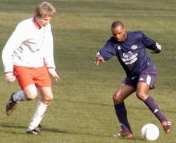 18.04.04: Die zweite Mannschaft des VfL ist in der 1. Kreisklasse wieder auf Titelkurs. Das Team von Uwe Eckel gewann heute gegen den TuS Weener II mit 3:0. Das 1:0 erzielte Schemus Agirman - nach Vorarbeit des kurz zuvor eingewechselten Ralf Ammermann (Bild). Und Ammermann bewies auch noch, daß er seinen Tor-Riecher nicht verloren hat. Denn "Ralle" traf selbst noch zwei Mal und schoß Germania Leer II so zum verdienten 3:0-Erfolg.