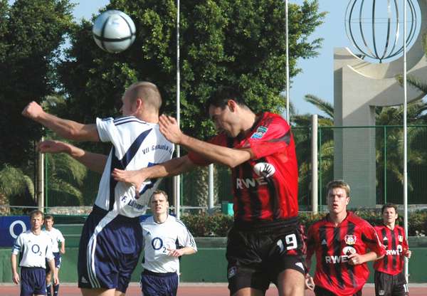 Vecindario. Im Rahmen des beim o2-Cup-Turnier gewonnenen Aufenthalts auf der Ferieninsel verlor der VfL das Freundschaftsspiel gegen den Bundesligisten Bayer Leverkusen im Estadio Municipal in Vecindario lediglich mit 0:4. Für eine Überraschung hatten die Ostfriesen am späten Nachmittag des 05. Januar also nicht sorgen können, verkauften sich aber teuer: „Leer hat ein ordentliches Spiel gezeigt“, meinte Bayer-Verteidiger Jens Nowotny. „Und sie waren erfreulich fair.“ Und Andrej Voronin zeigte sich erstaunt: "Germania Leer war ganz schön stark." Die Hoffnung von Trainer Ralf Ammermann, möglichst lange ohne Gegentreffer zu bleiben, machte Nationalspieler Paul Freier aber bereits nach elf Minuten zunichte, als er Torwart Kurt Ullmann mit einem Distanzschuss überwand. Die anderen beiden Toren bis zur Pause bereitete Paul Freier vor. „Mann, der ist so verdammt schnell“, sagte Gegenspieler Bernhard Lübbers, der nach einem Zusammenprall mit Ullmann nach 35 Minuten ausgewechselt werden musste. Germania Leer hielt das 0:1 lange, bis Freier den Brasilianer Robson Ponte bediente, der den Pfosten traf. Den Abpraller schob Frank Hilbrands ins eigene Tor (40.). Rückkehrer Landon Donovan erhöhte nach einem Freier-Pass noch vor der Pause auf 3:0. (43.). Nach Wiederbeginn wurde auf beiden Seiten viel gewechselt - aber Tore fielen lange nicht. Dabei erspielte sich Germania sogar die eine oder andere Chance. Im Abschluß fehlte dann jedoch das Glück. So durfte nur Bayers Talent Öztürk noch einmal jubeln, als er in der 87. Minute zum 4:0 traf. „Wir haben uns richtig gut aus der Affäre gezogen und können stolz auf unsere Leistung sein“, freute sich Germania-Coach Ralf Ammermann. Nach dem Schlußpfiff gingen die Leeraner Spieler auf Trikotjagd. Jörn Janssen hatte schon nach dem ersten Zweikampf mit Robson Ponte gefragt, wie es denn mit einem Trikotausch aussehen würde. Der Brasilianer fragte beim Zeugwart nach - und übergab sein verschwitztes Shirt. Christoph Kaltwasser ergatterte das Oberteil von Andrej Voronin, Julian Zaps sicherte sich das Dress von Roque Junior.